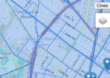 Movilidad: rutas de bus en geojson, estaciones como markers y flyTo para ir a corredores clave. Escala visible para mediciones rápidas.